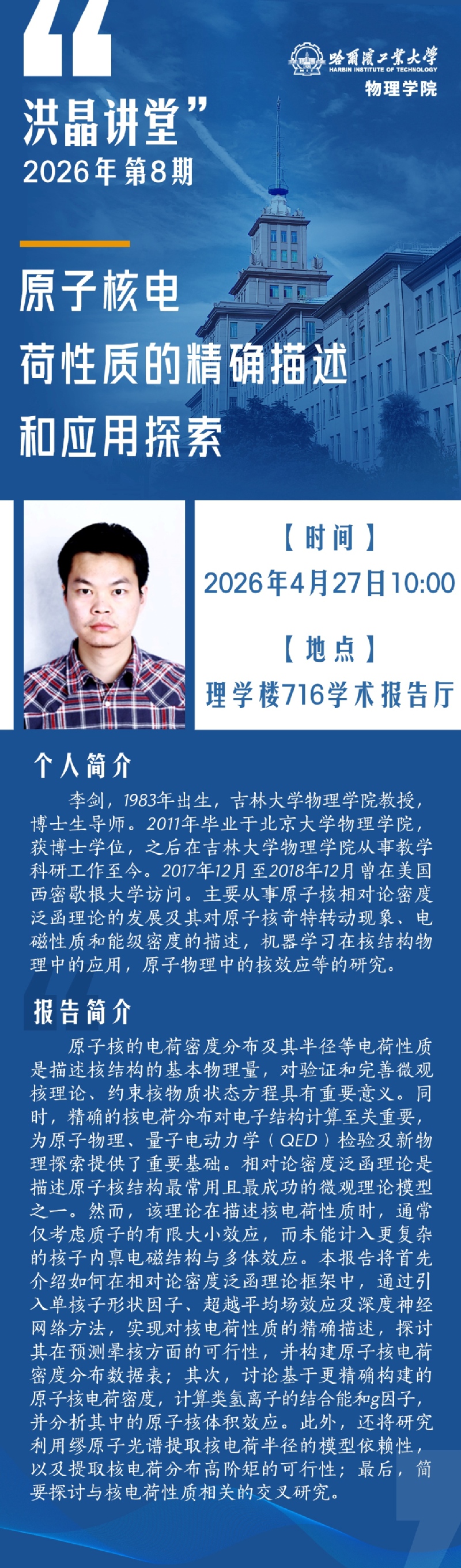 【洪晶讲堂2026年第8期】原子核电荷性质的精确描述和应用探索
